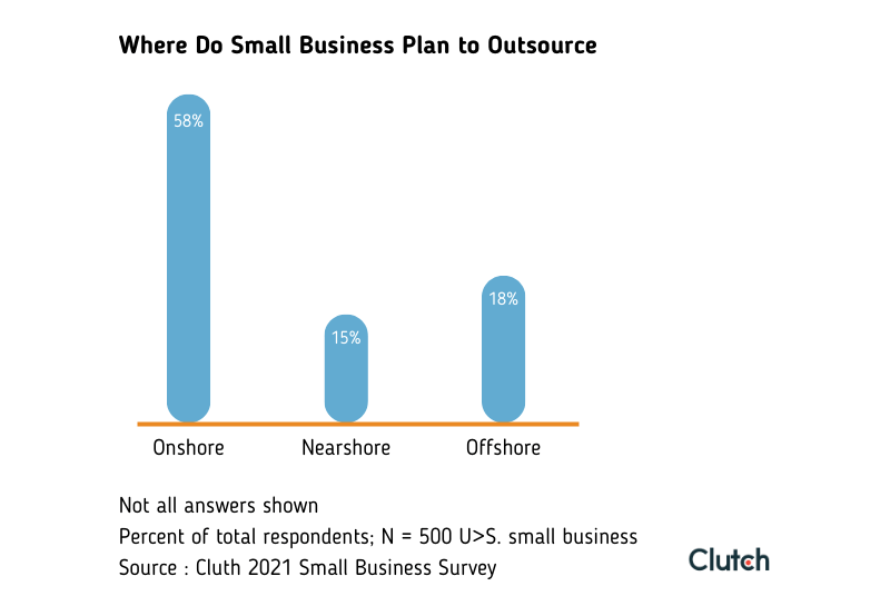 As per findings from the Clutch 2021 Small Business Survey, 15% of small businesses in the United States embrace nearshore outsourcing, citing the capacity to engage with both domestic and international firms as a significant benefit. For these enterprises, fostering fresh partnerships can play a pivotal role in their market expansion and growth strategies.