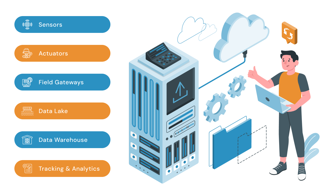 - Sensors: Gather and transmit data to a centralized cloud platform.
