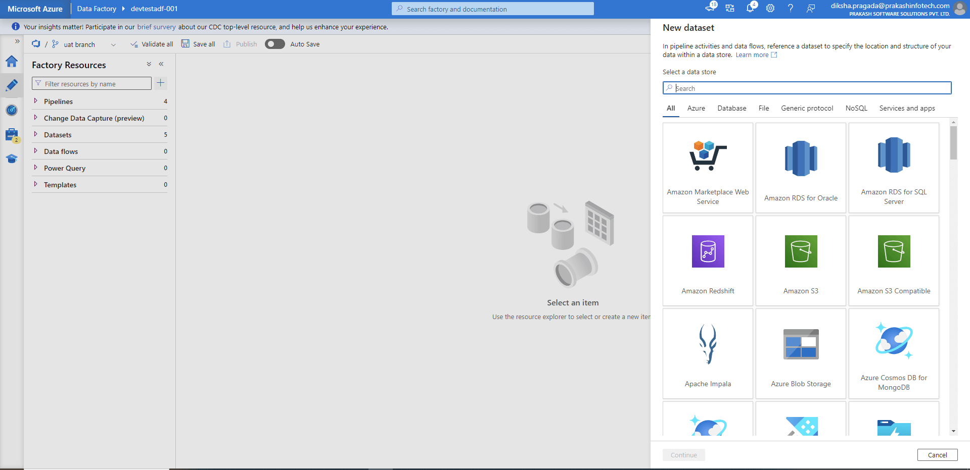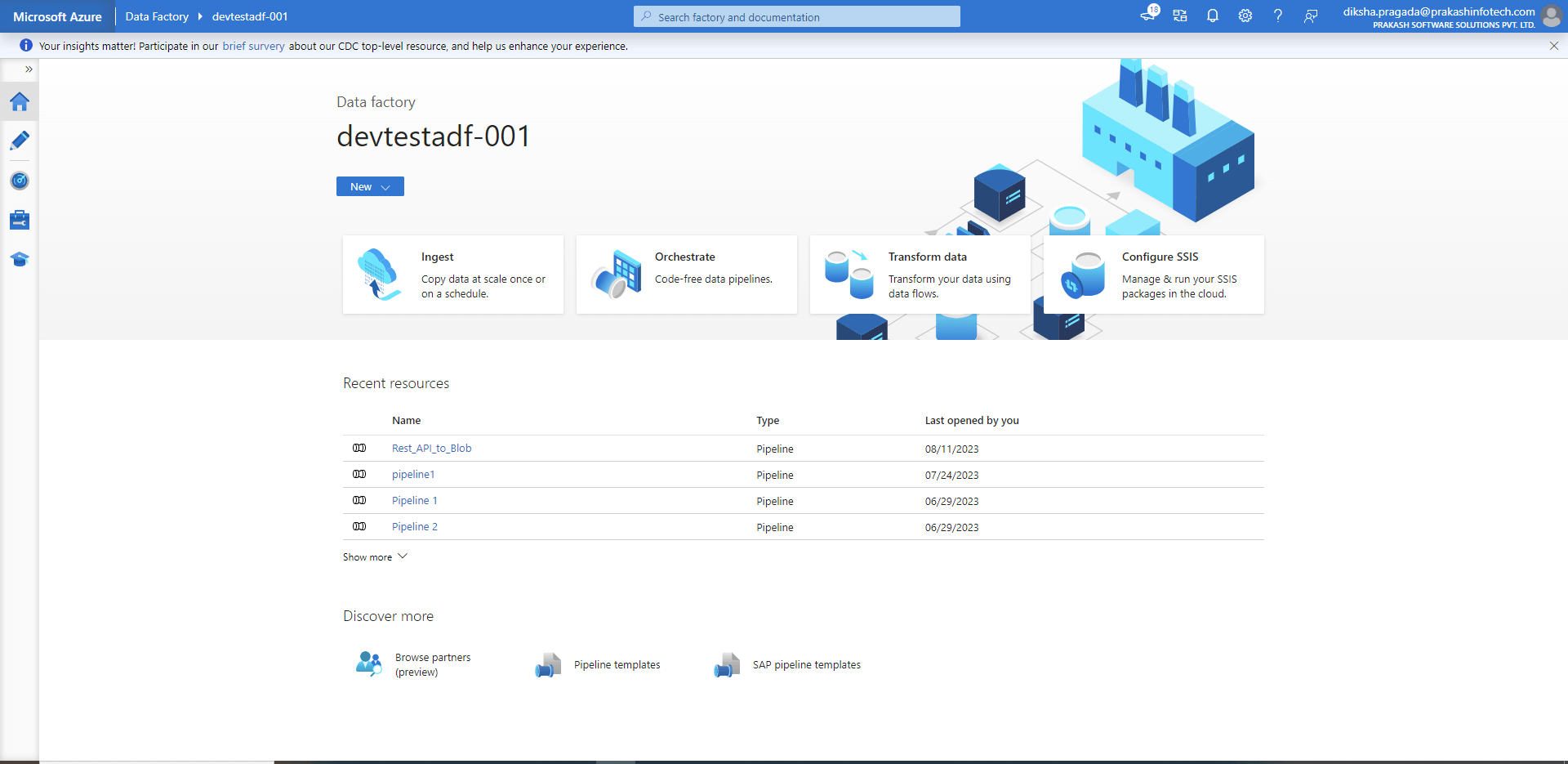 Begin by initiating an Azure Data Factory instance within the Azure portal:
