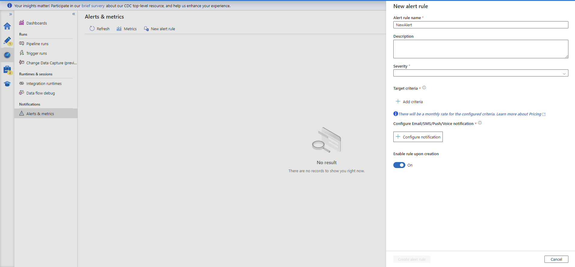 Proceed to customize the essential parameters, including the region, resource group, and integration runtime settings.