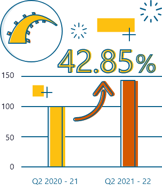 For the quarter-2 (July to September 2021) quarterly, we had 42.85% sales growth in comparison with Q2 of last financial year (2020-21). In this quarter, we have successfully integrated a well-known Project Management System with our internal ERP tool to take out a certain vital piece of information on the go basis. (This PMS is a web-based project management tool with a lot of flexibility. It is cross-platform and database-agnostic, thanks to the Ruby on Rails framework.)