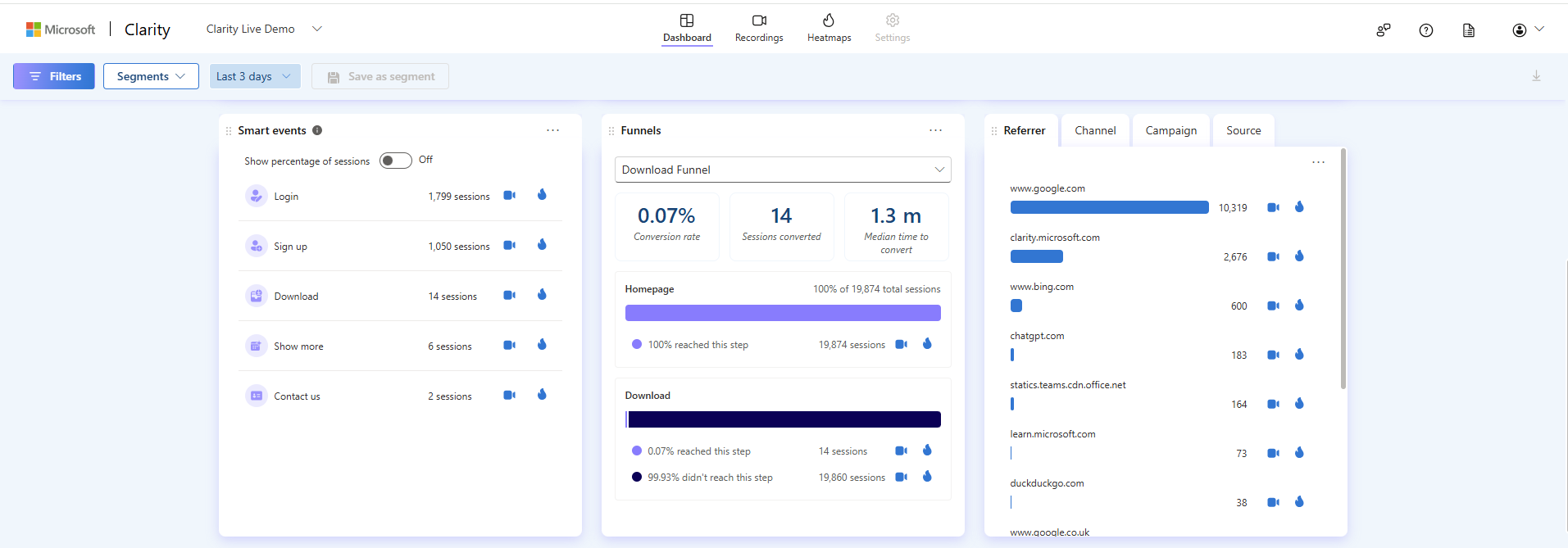 - Session Playback: Clarity captures user sessions within mobile apps, allowing developers to replay interactions. This feature helps identify usability issues, areas of confusion, or points where users might disengage.