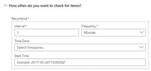Furthermore, you have the option to configure advanced parameters, such as determining the frequency of checking for new items in SharePoint. Define the interval, frequency, and time zone to customize this aspect.