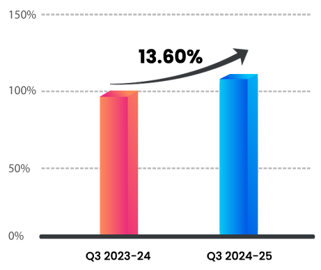 During Q3 2024-25, our performance increased by 13.60% compared to the same period last year (Q3 2023-24 vs. Q3 2024-25).
